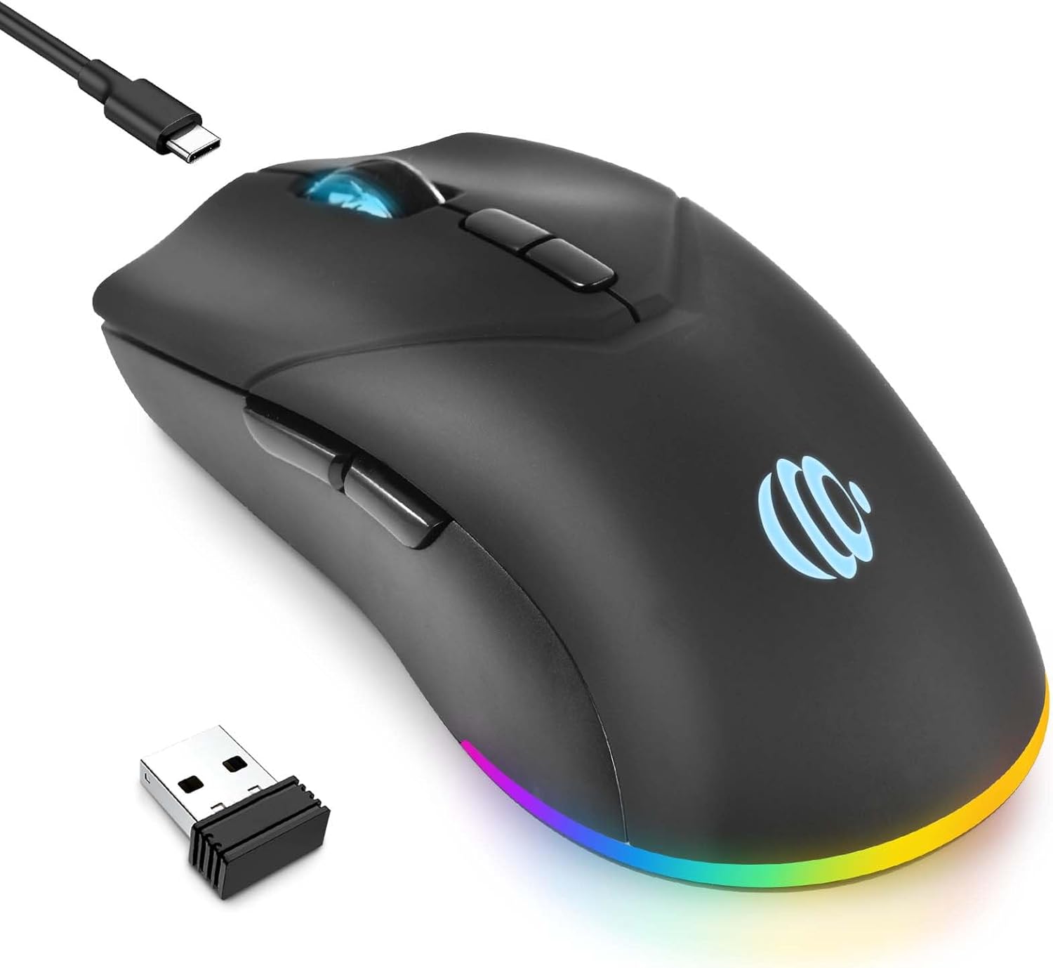 【Dual-mode Wireless Bluetooth Mouse】: (BT5.2 and 2.4G) Dual-mode enables a mouse to freely switch between two devices on one computer. The Bluetooth mouse mode can connect to one device via BT5.2/3.0, while the wireless mouse mode connects to another device via a 2.4G USB receiver. No driver installation is required, and it is plug-and-play. Wireless/Bluetooth technology provides a strong and reliable connection, enabling fast data transmission without delay or interruption, with an effective range of up to 10 meters (33 feet).