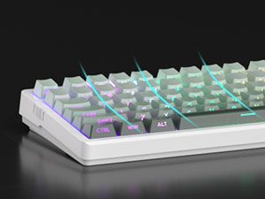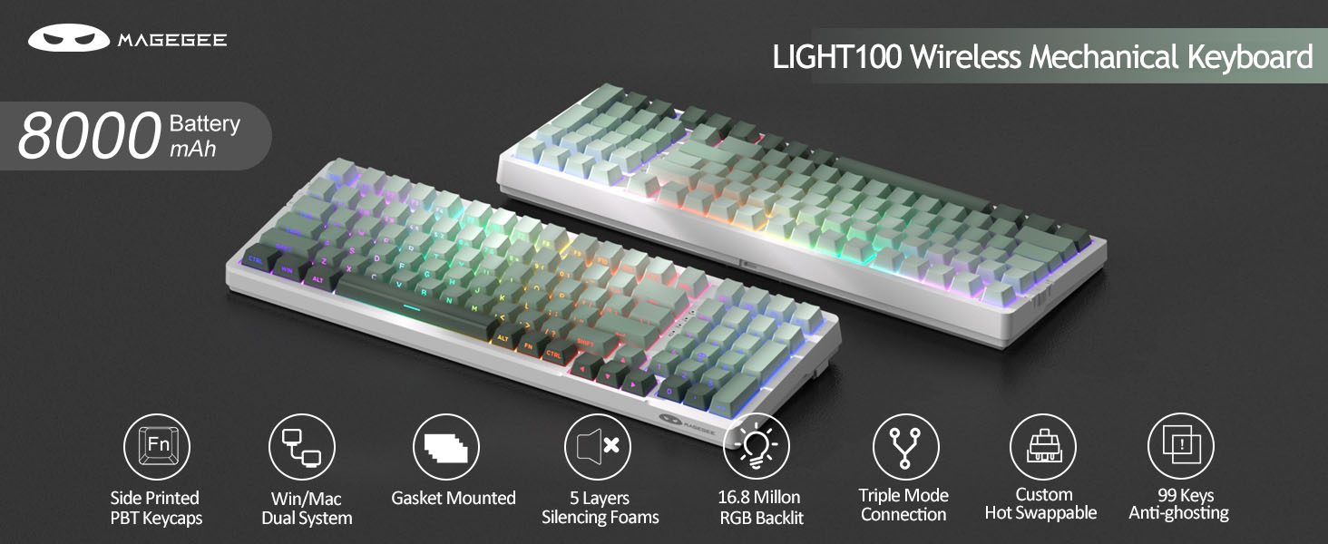 [CREAMY THOCK SOUND GASKET STRUCTURE]: LIGHT100 keyboard mounting is different from the traditional screw fixing method, but using gaskets mounted on the top and bottom sides between the panel and the keyboard shell, which acts as a cushioning layer, in addition, the keyboard is designed with five layers sound-absorbing foams filling, can effectively reduces the noise, improves the typing comfort and accuracy, and brings crisp, clean and softer typing feel.