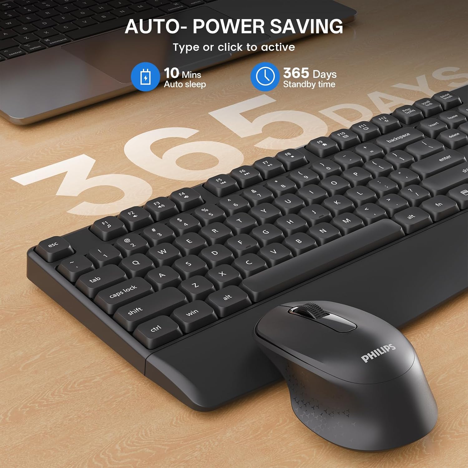 Smart Power Saving, Long-Lasting Battery Life:The wireless mouse and keyboard have auto power-saving feature that puts the devices into sleep mode when idle, extending battery life and ensuring you’re always ready to work without frequent battery changes