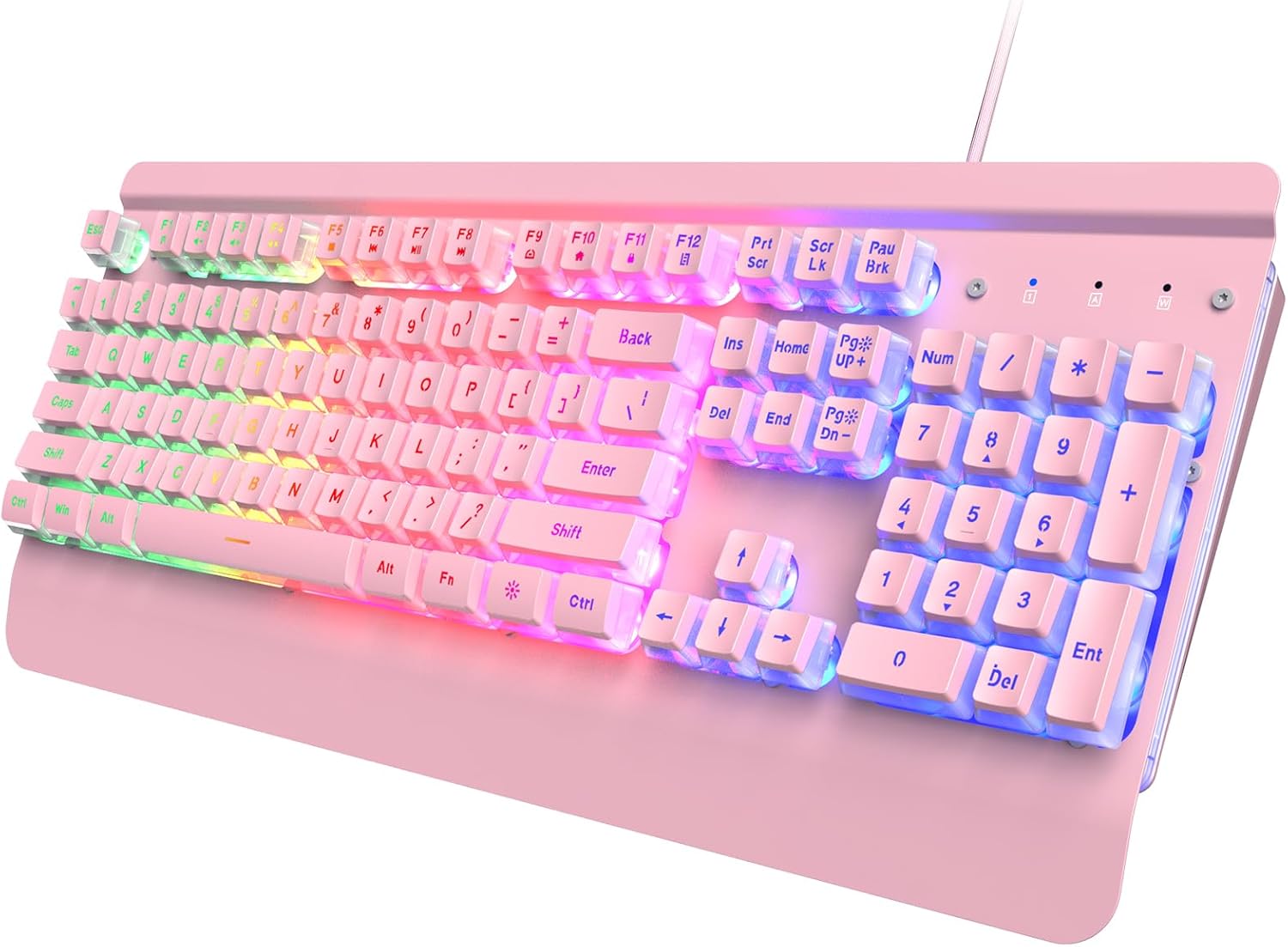 Ergonomic Design with Wrist Rest: This creamy keyboard features a scientific stepped keycap design, maximizing hand comfort during extended gaming or work sessions. It also provides an ergonomic typing angle (7°) and wrist support. All keys offer a soft touch, without loud clicking noises, allowing for late-night typing or gaming without disturbing others.