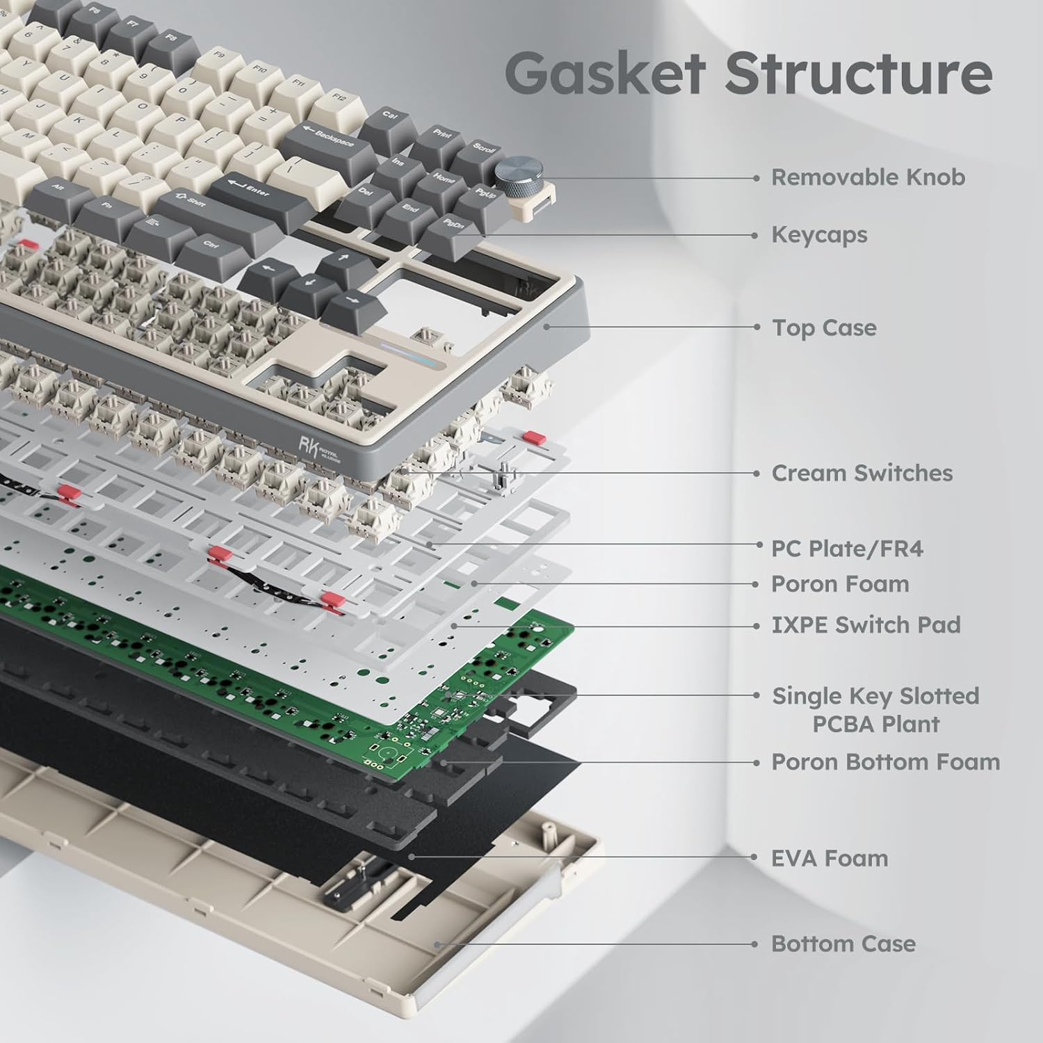 Gasket Structure: This 75 percent tkl ergonomic mechanical keyboard’s 5-layer gasket design reduces noise and vibration, providing a noiceless and focused typing environment for gaming or work